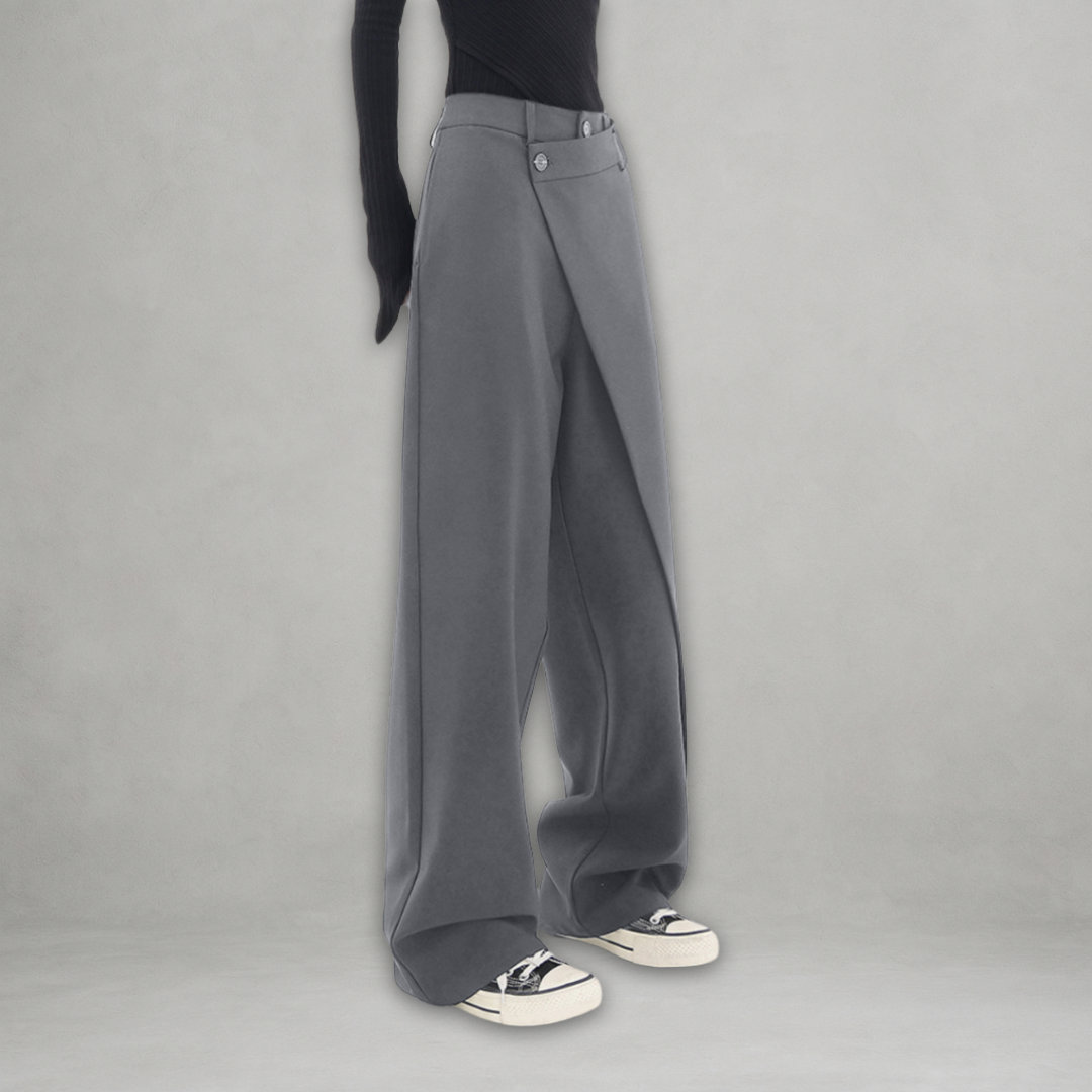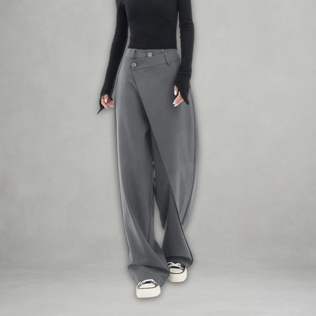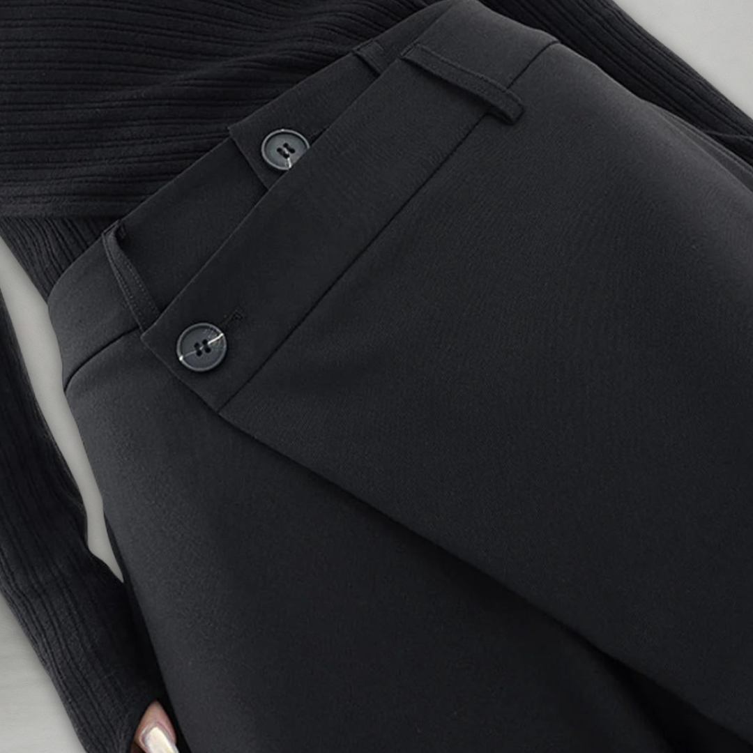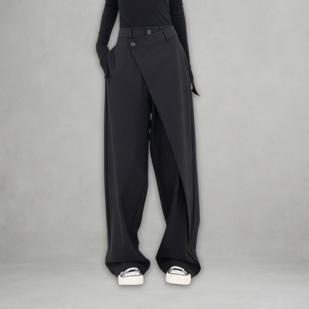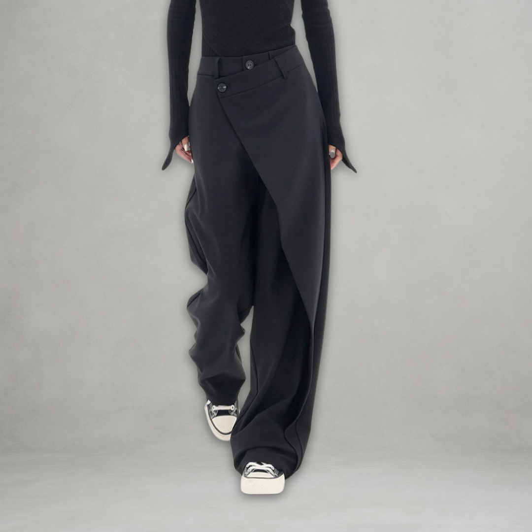 As calças Barbara destacam-se pelo seu design assimétrico e corte amplo, combinando estilo contemporâneo com conforto incomparável. O detalhe dos botões na frente adiciona personalidade e sofisticação, tornando-as perfeitas para criar looks elegantes e descontraídos ao mesmo tempo.